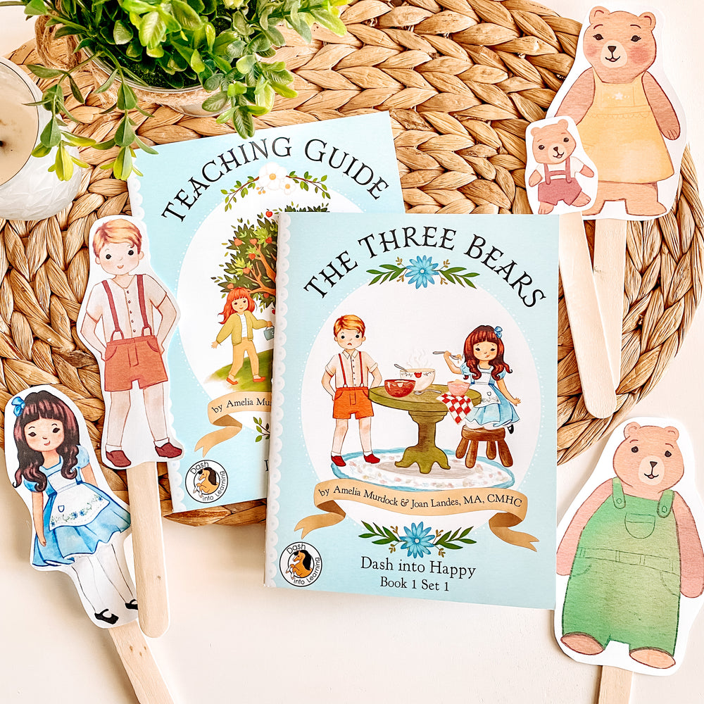 Dash into Happy teaches that Social-emotional learning occurs in three ways: children watch their parents and other role models, children are taught directly through precept, and children are taught indirectly through messages from our stories.