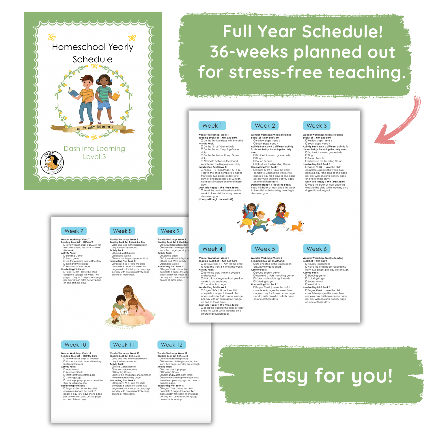 - A simple, easy-to-follow guide that helps parents integrate every component into a structured year of learning.