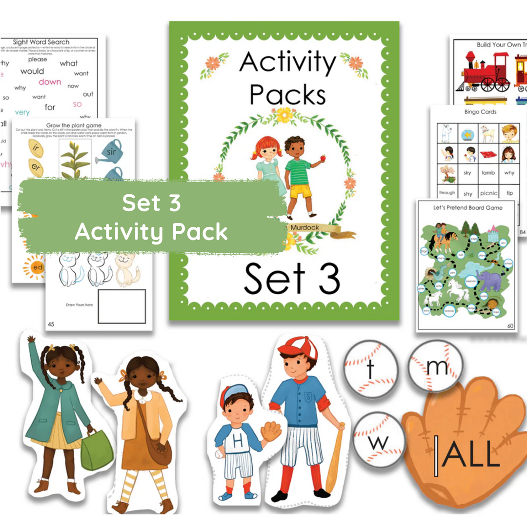 - Nearly 200 pages of printed phonics games, paper puppets, sound cards, coloring, and more!