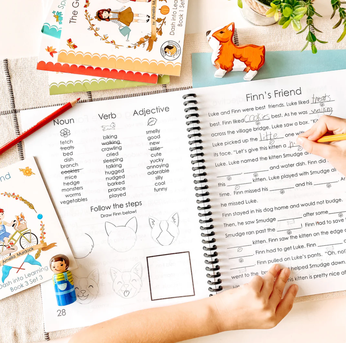 Our full-year curriculum is story and connection based -- not worksheet or test focused! All our Dash characters are in all the books -- kids love following all their stories!