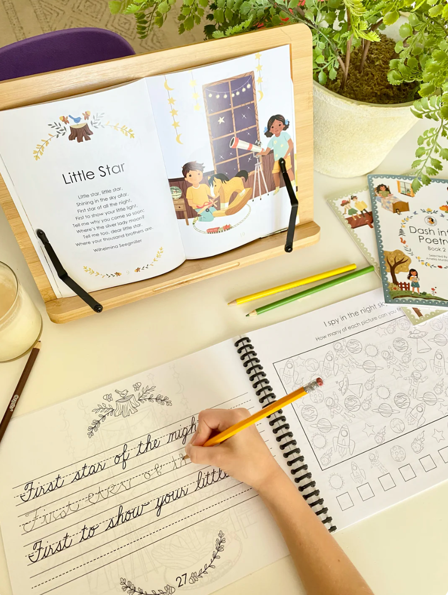 - 80+ page spiral bound book full of fun activities and handwriting that support and reinforce the poetry and phonics being taught.